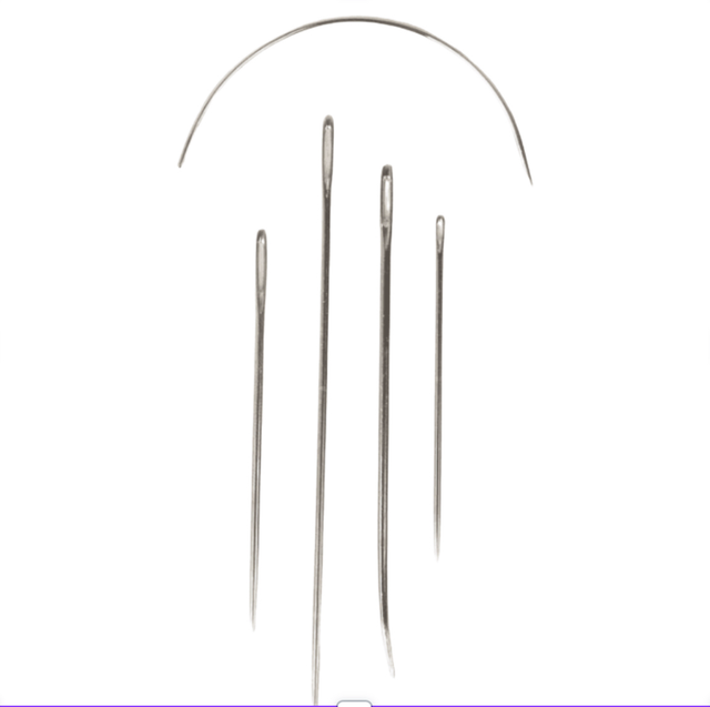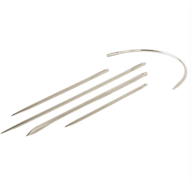 Aiguilles Bricoleur assortiment en acier véritable. 4 aiguilles droites pour différents matériaux de 5 à 9cm pour: Tapis, Voile, Tissage, Emballage et 1 aiguille courbe de 5,2cm.