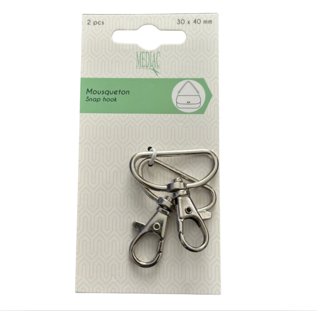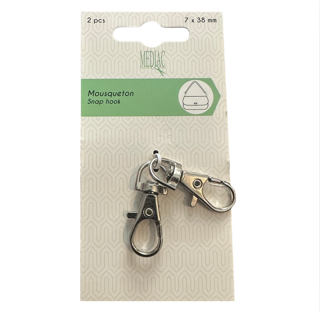 Mousquetons argentés métalliques pour pochette, sac léger ou bretelles vendus par 2. Existe en 3 tailles.