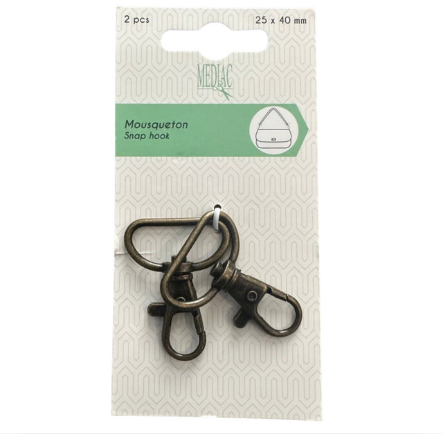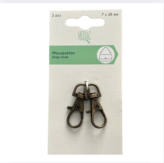 Mousquetons Vieil Or métalliques pour pochette, sac léger ou bretelles vendus par 2. Existe en 2 tailles.
