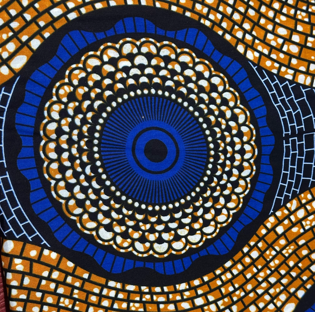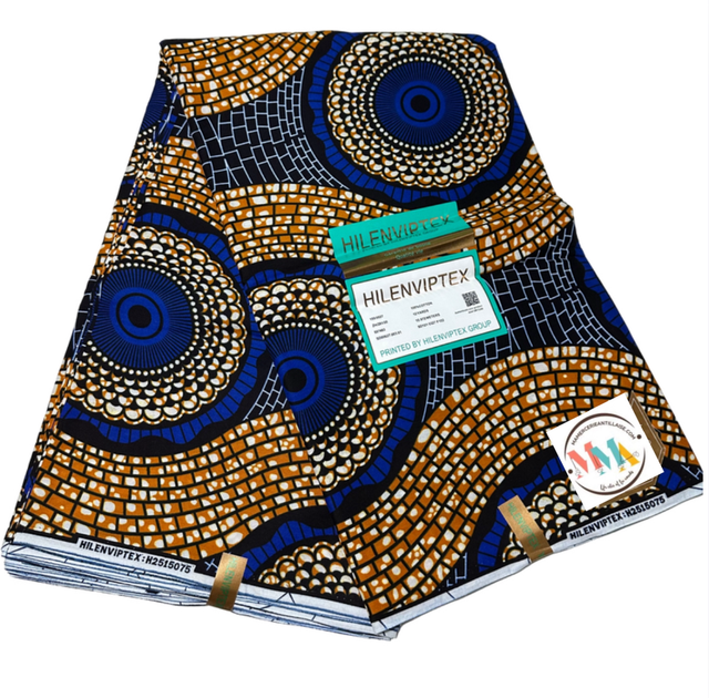 Wax Bleu Roi Marron Marine Polycoton en 1m15 de large.Véritable Block Prints Super Wax, Marque Hilenviptex vendu par mètre.