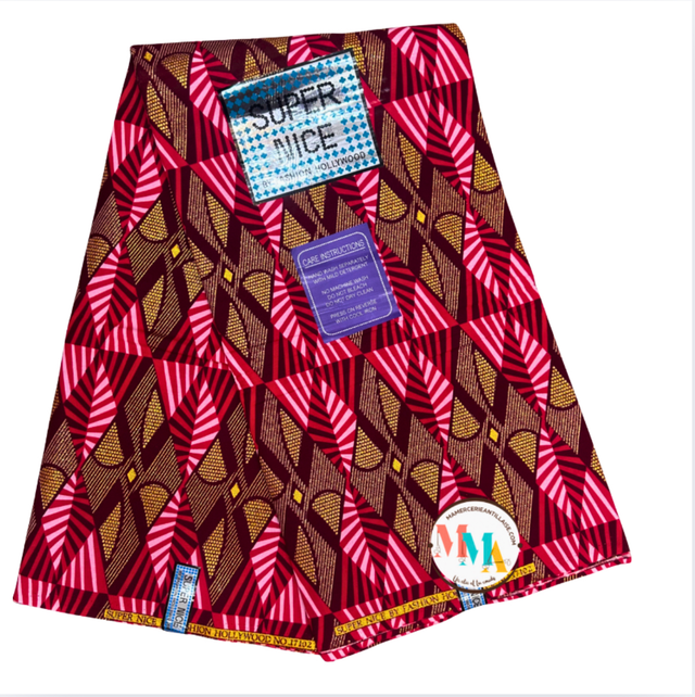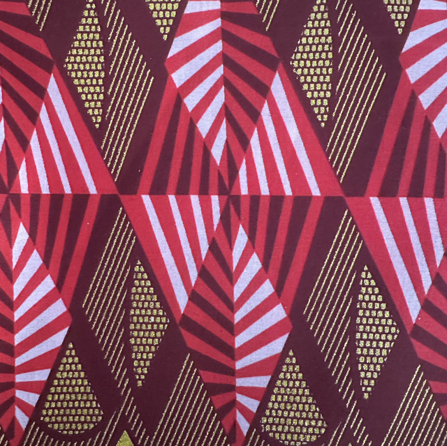 Wax Rouge Bordeau Rose pâle Pailleté doré en tissu 100% Coton de 1m15 de large. Super Nice Wax, Marque Fashion Hollywood vendu par coupon de 4m50.