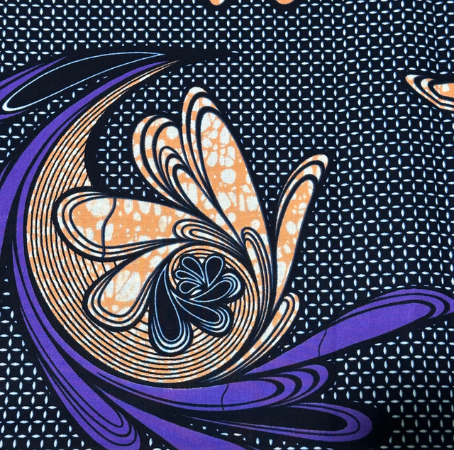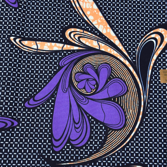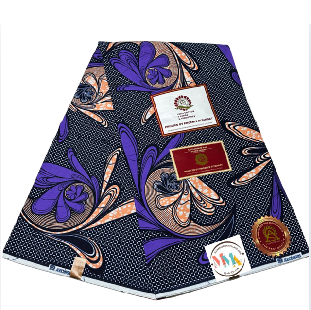 Wax Marine Violet Saumon en 100% Coton en 1m15 de large. Véritable Block Prints Super Wax, Marque Phoenix Hitarget Aeonsun vendu par coupon de 4m50.
