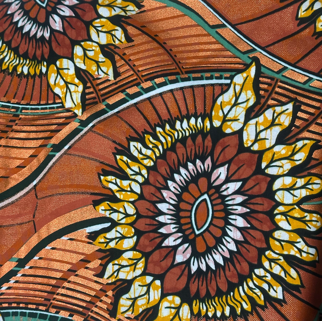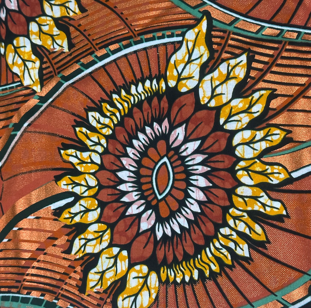 Wax Gold Rouille Marron Jaune Argenté Vert et Noir en tissu 100% Coton de 1m15 de large. Marque Chiganvy Waxhaus vendu par coupon de 5m40