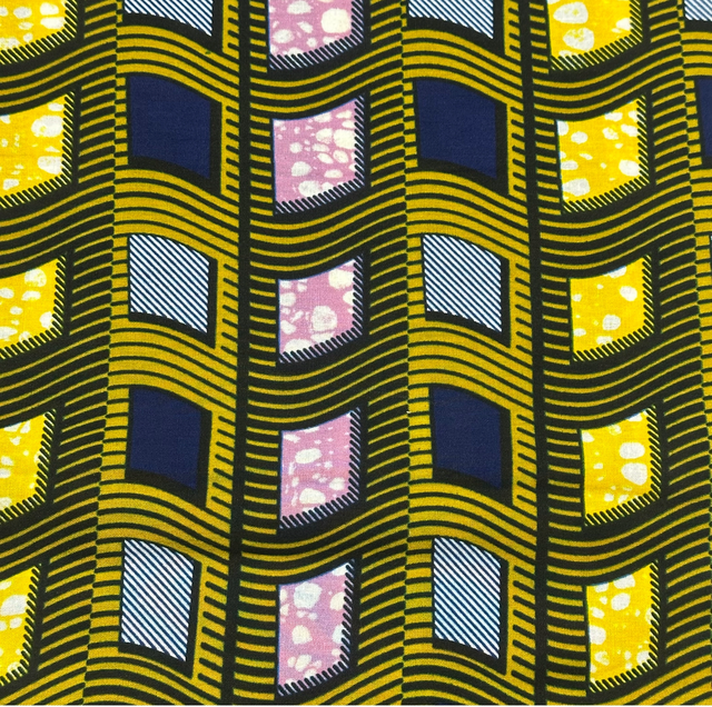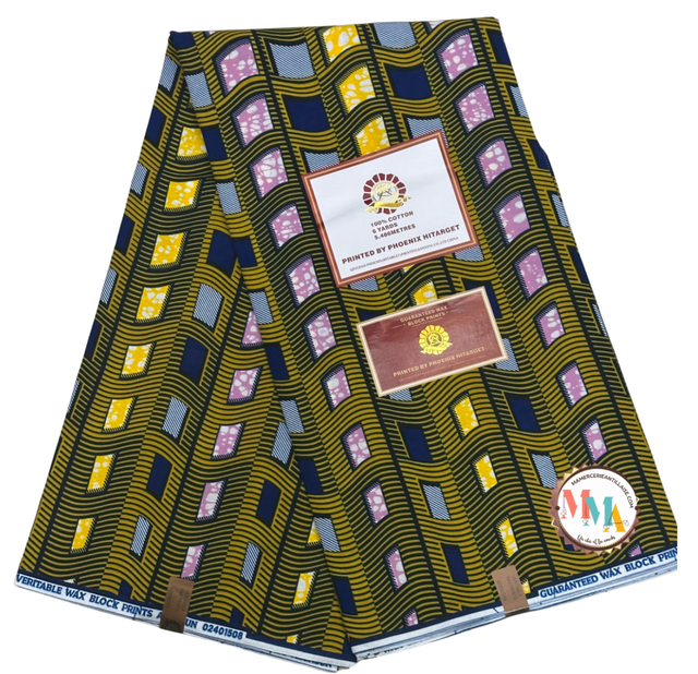 Wax Ocre Vieux-Rose Marine Noir et Blanc en tissu 100% Coton de 1m15 de large. Véritable Block Prints Super Wax, Marque Phoenix Hitarget Aeonsun vendu par coupon de 5m40