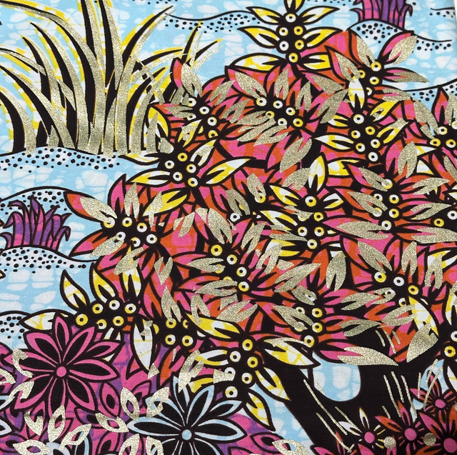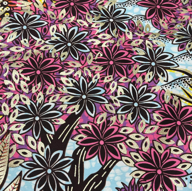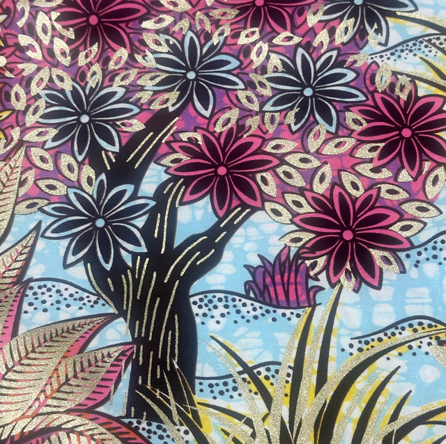 Wax Bleu ciel Rose Orange Marron 100% Coton pailleté en 1m15 de large. Marque Chiganvy Waxhaus vendu par coupon de 4m50.