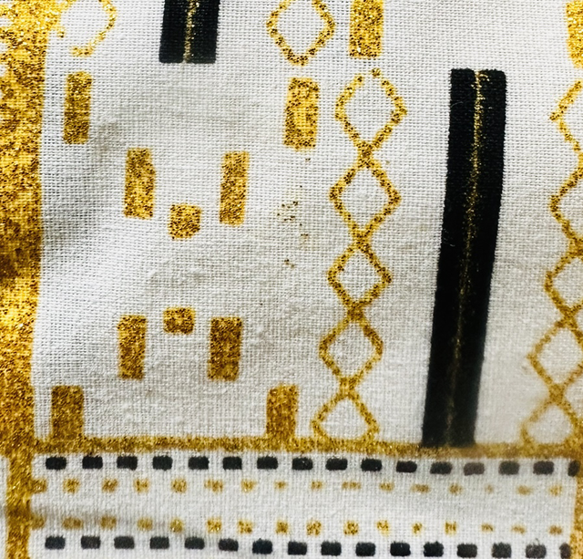 Wax fond Blanc motifs Noirs Pailleté Doré en tissu 100% Coton de 1m15 de large. Verticale Wax Blocks Super Nice marque By Fashion Hollywood vendu par coupon de 90cm.