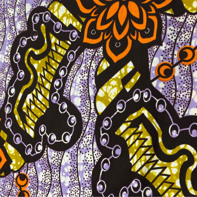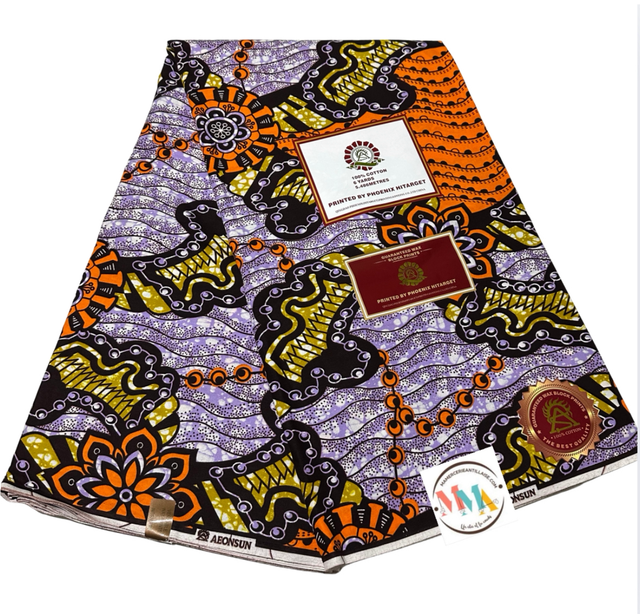 Wax Parme Abricot Ocre et Marron en 100% Coton en 1m15 de large. Véritable Block Prints Super Wax, Marque Phoenix Hitarget Aeonsun vendu par coupon de 5m40