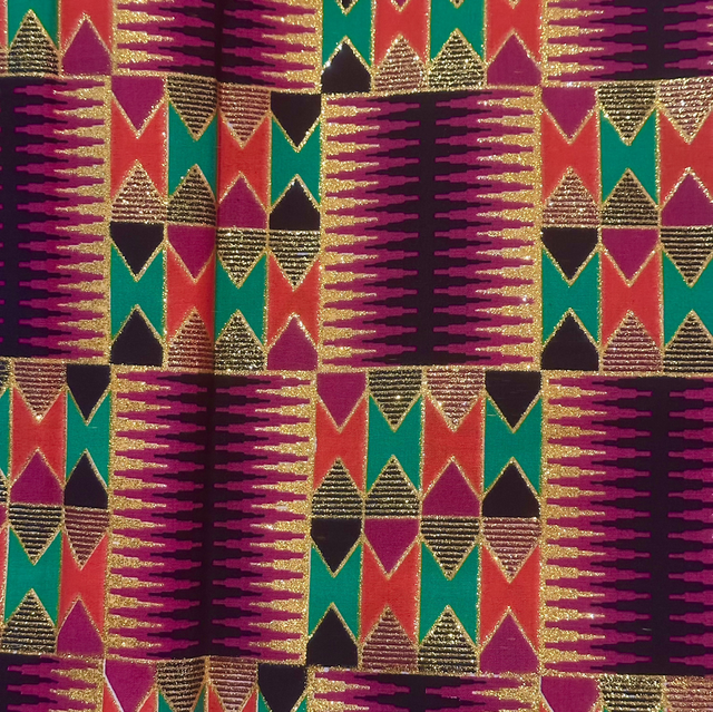 Wax Kenté Fuchsia Violacé Vert Tomate Noir Pailleté Doré en 100% Coton. Vertitable Wax Blocks Super Nice marque By Fashion Hollywood vendu par coupon de 5m40.