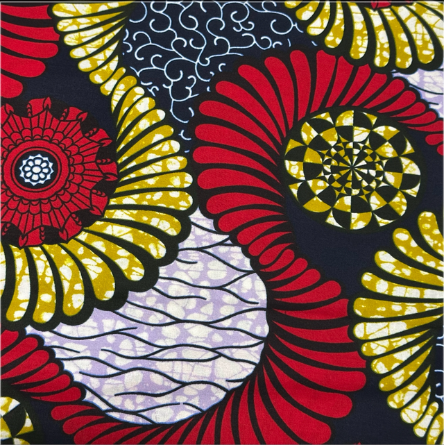 Wax Rouge Parme Caca d’oie et Marine en 100% Coton en 1m15 de large. Véritable Block Prints Super Wax, Marque Phoenix Hitarget Aeonsun vendu par coupon de 2m70.