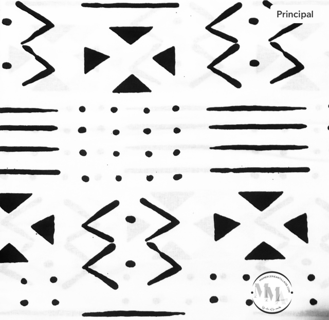 Wax fin motif Bogolan fond Blanc motifs Noirs en tissu 100% Coton de 1m15 de large. Véritable Block Prints, Marque Galaxy Fashion vendu par coupon de 1m80.