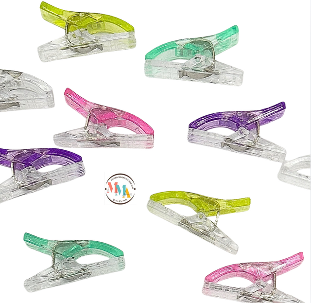 Pinces de couture vendues par lot de 10. Ces pinces mesurent long. 2,7cm x larg. 1cm et 1,5cm de haut. Elles sont très pratiques pour assembler rapidement les pièces de tissus à coudre.