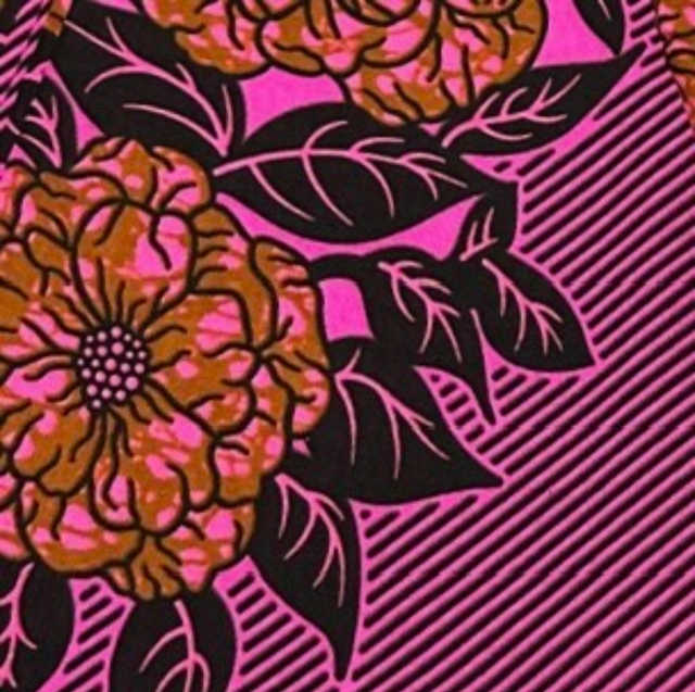 Wax Rose Cannelle rayé Marron en tissu 100% Polycoton en 1m15 de large.Véritable Block Prints Super Wax, Marque Hilenviptex vendu par coupon de 2m70.