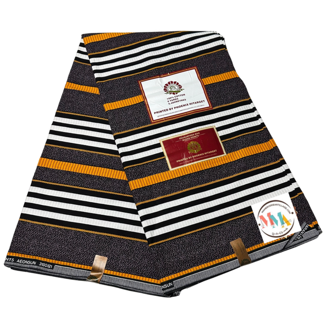 Wax Marron Rayé Abricot et Blanc en tissu 100% Coton de 1m15 de large. Marque Phœnix Hitarget Aeonsun vendu pas coupon de 5m40.